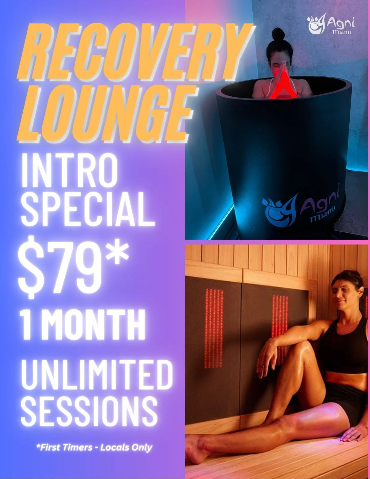 Ready to take your Agni experience to the next level? Check out our RECOVERY LOUNGE Intro Special!